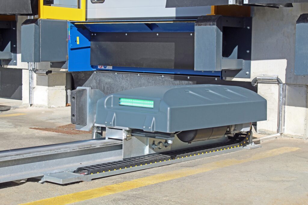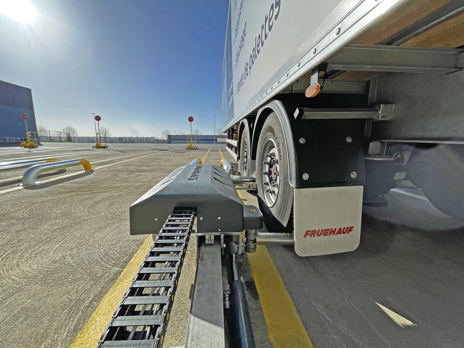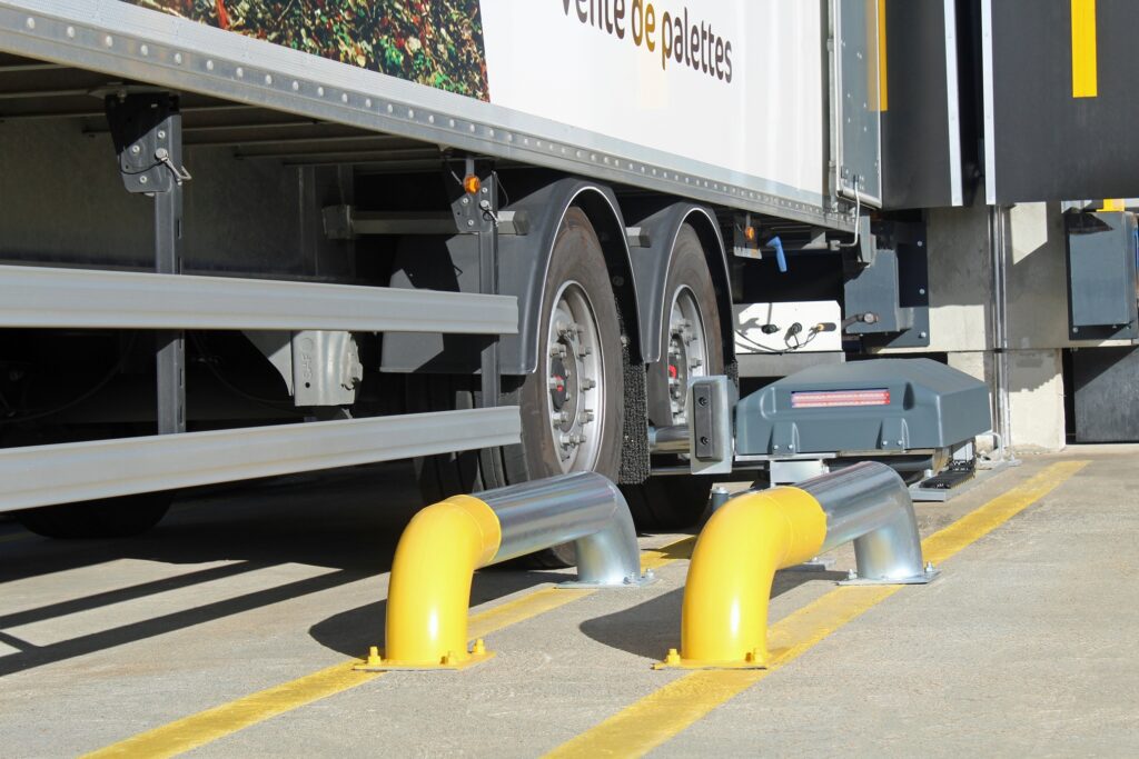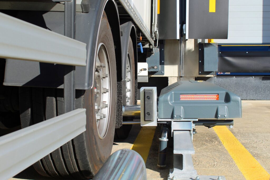 AUTOBLOCK to półautomatyczny system blokowania kół, przeznaczony do zabezpieczania pojazdów ciężarowych podczas operacji załadunku i rozładunku w dokach przeładunkowych. System unieruchamia koło pojazdu w sposób mechaniczny, ograniczając ryzyko jego niekontrolowanego odjazdu w trakcie pracy w doku.